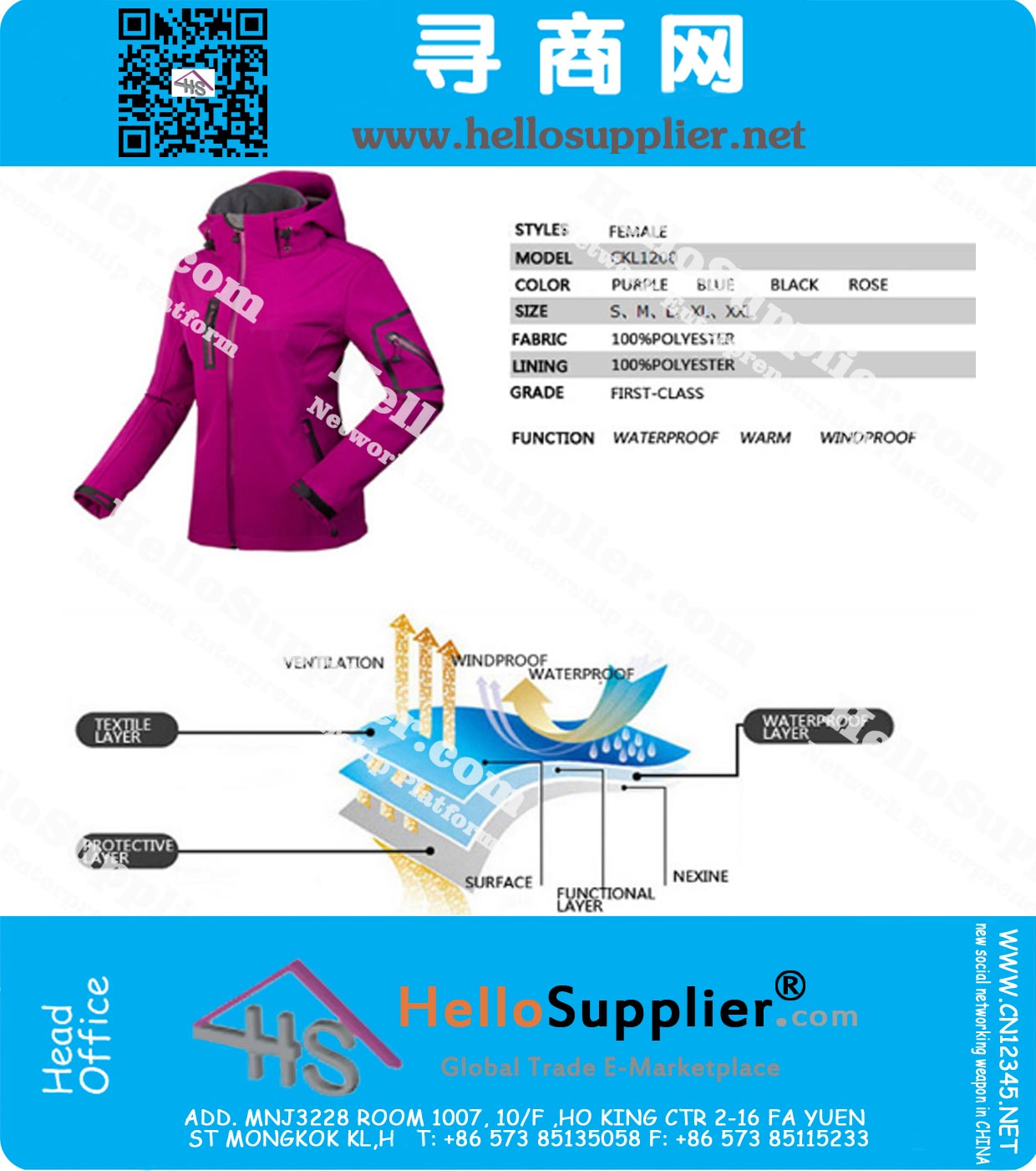 Function:waterproof, windproof, breathable, wear-resistant, thermal